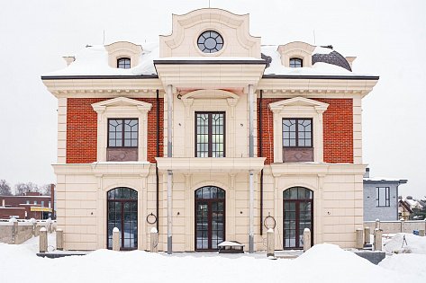 Коттедж выполнен в классическом стиле включает элементы стилей Тюдоров, Шато, Боз-ар и даже Барокко.