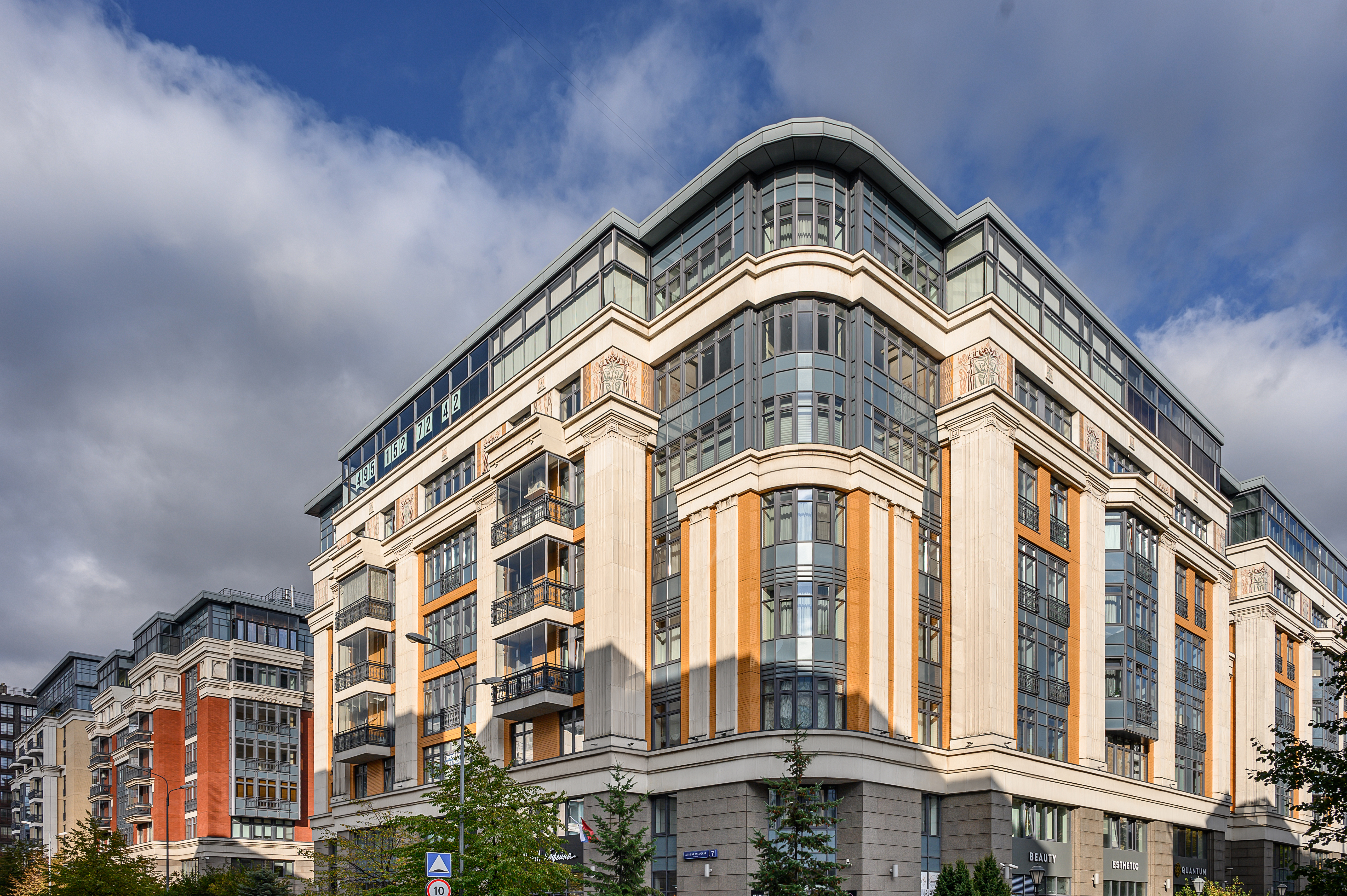 Комплекс состоит из 4 особняков в неоклассическом стиле высотой 10 этажей.