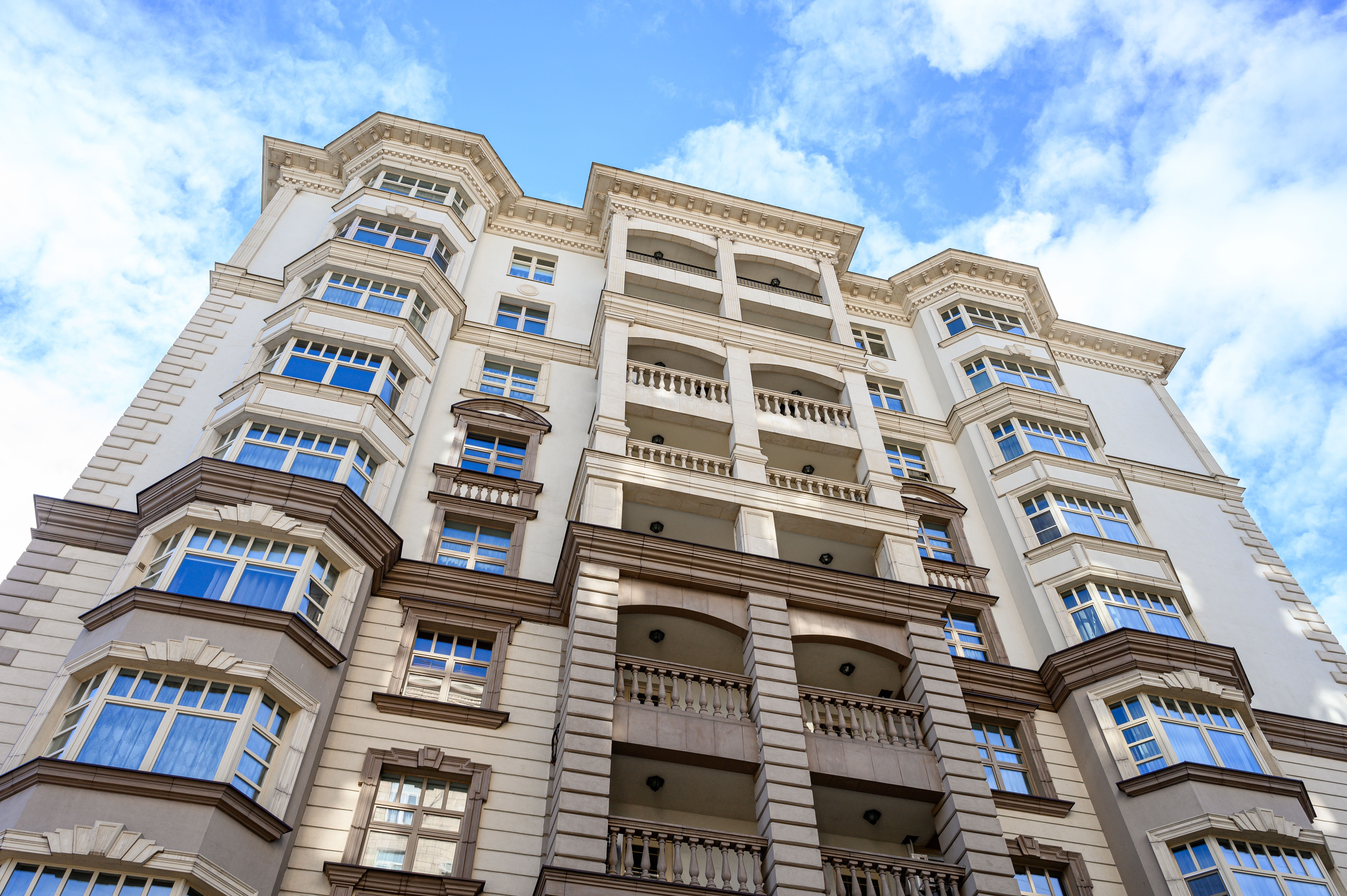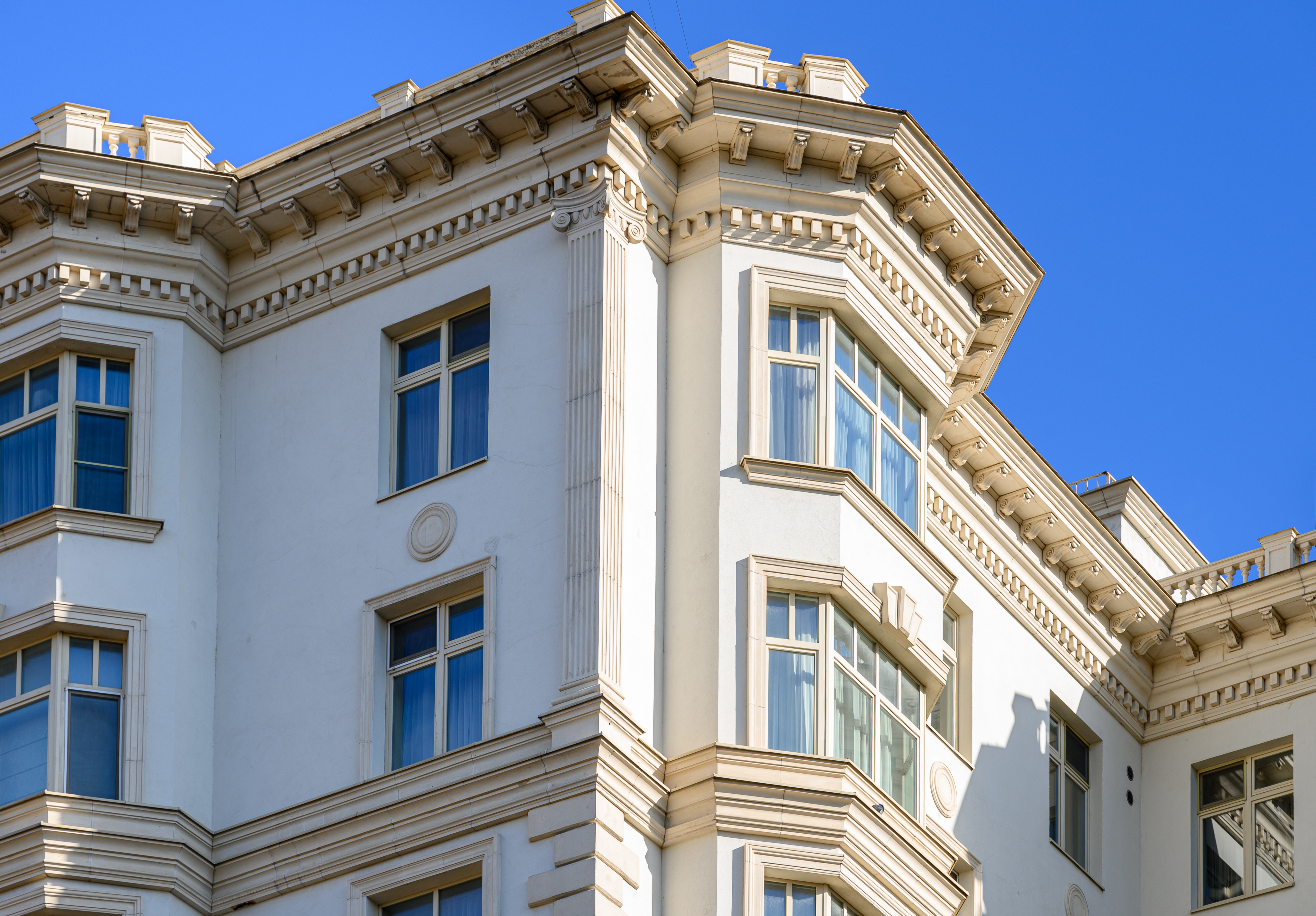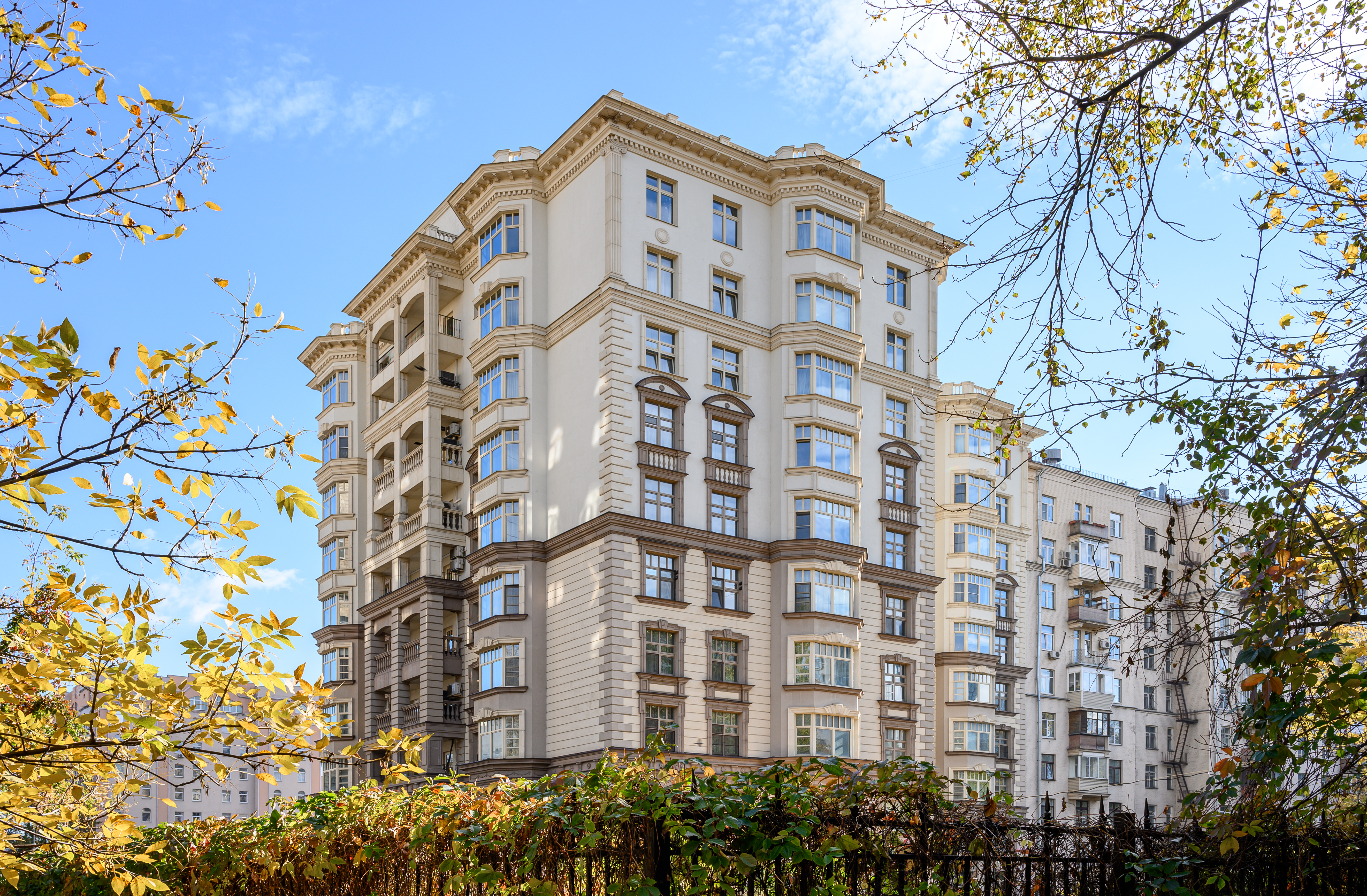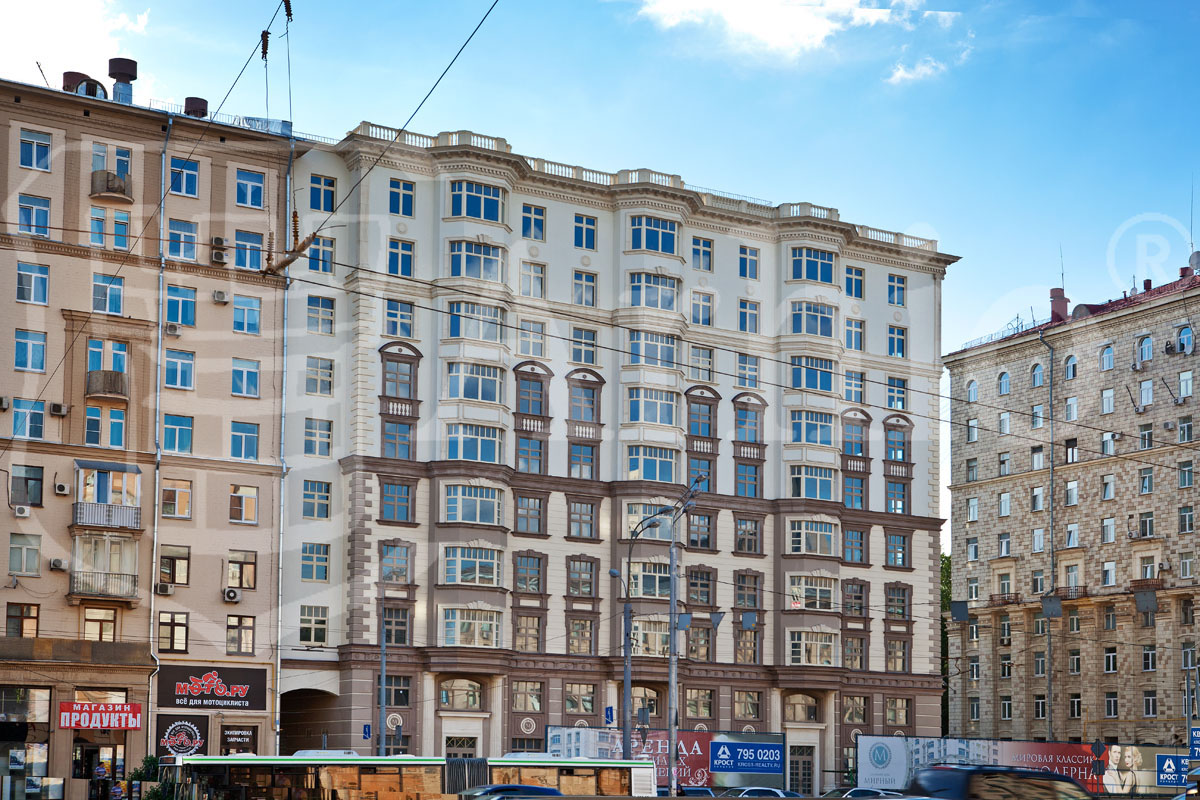 Современный жилой комплекс в классическом стиле. В соответствии с архитектурным проектом были разработаны нестандартные элементы фасадного декора с уникальной системой крепления.