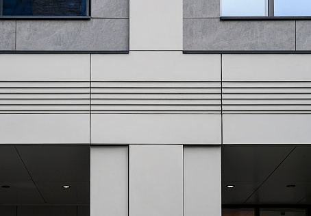 Для проекта были произведены: плоские, рифленые и радиусные панели 3х2м., потолочная обшивка, карнизы.